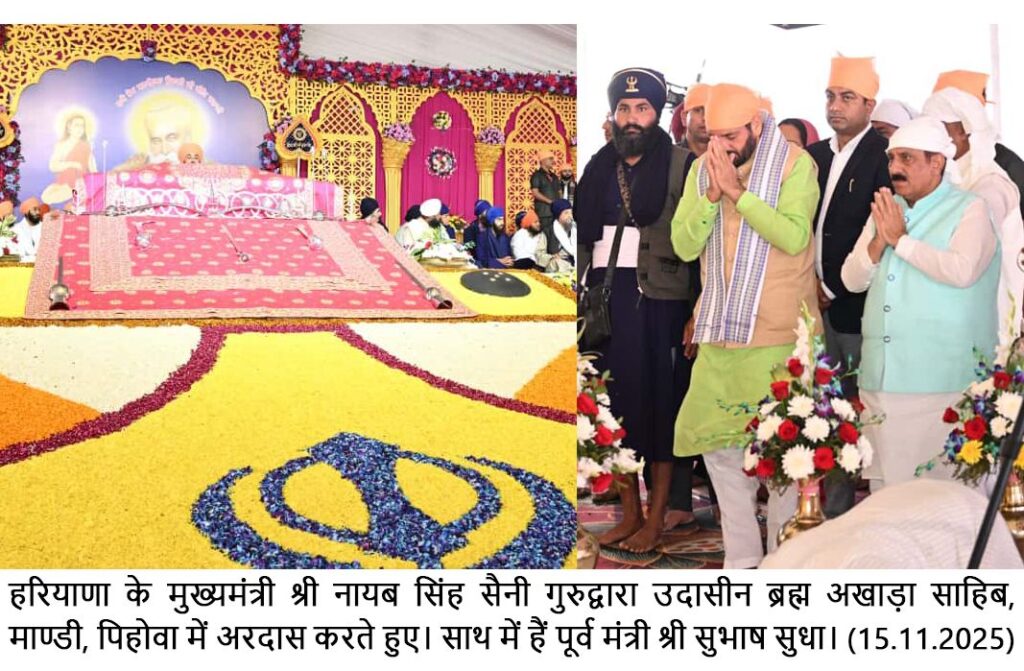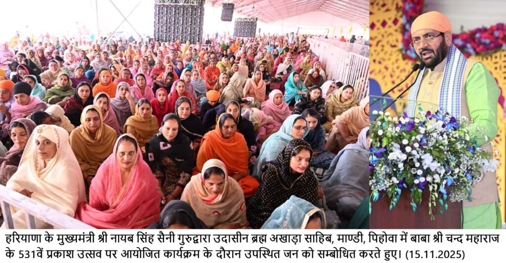 मुख्यमंत्री नायब सिंह सैनी ने उदासीन श्री ब्रहम अखाड़ा साहिब मांडी में बाबा श्री चन्द महाराज के 531वें प्रकाश उत्सव पर आयोजित कार्यक्रम में की शिरकत