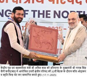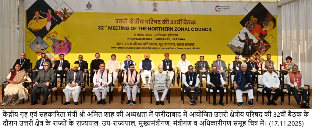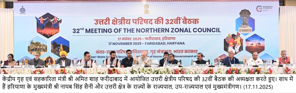 केंद्रीय गृह मंत्री व उत्तरी क्षेत्रीय परिषद् चेयरमैन अमित शाह की अध्यक्षता में सोमवार को फरीदाबाद के सूरजकुंड में उत्तरी क्षेत्रीय परिषद् की 32वीं बैठक का आयोजन किया गया। इस बैठक में हरियाणा के मुख्यमंत्री व उत्तरी क्षेत्रीय परिषद के वाइस- चेयरमैन श्री नायब सिंह सैनी, पंजाब के मुख्यमंत्री श्री भगवंत मान, हिमाचल प्रदेश के मुख्यमंत्री श्री सुखविंदर सुक्खू, राजस्थान के मुख्यमंत्री श्री भजन लाल शर्मा, दिल्ली के उप राज्यपाल श्री विनय कुमार सक्सेना, दिल्ली की मुख्यमंत्री श्रीमती रेखा गुप्ता, जम्मू एवं कश्मीर के उप राज्यपाल श्री मनोज सिन्हा, जम्मू एवं कश्मीर के मुख्यमंत्री श्री उमर अब्दुला, लदृाख के उप राज्यपाल श्री कविंदर गुप्ता, चंडीगढ़ के प्रशासक श्री गुलाब चंद कटारिया, हरियाणा के राजस्व मंत्री श्री विपुल गोयल, सहकारिता मंत्री डॉ अरविंद शर्मा सहित संबंधित राज्यों व केंद्र शासित प्रदेशों के उच्चाधिकारियों ने हिस्सा लिया।