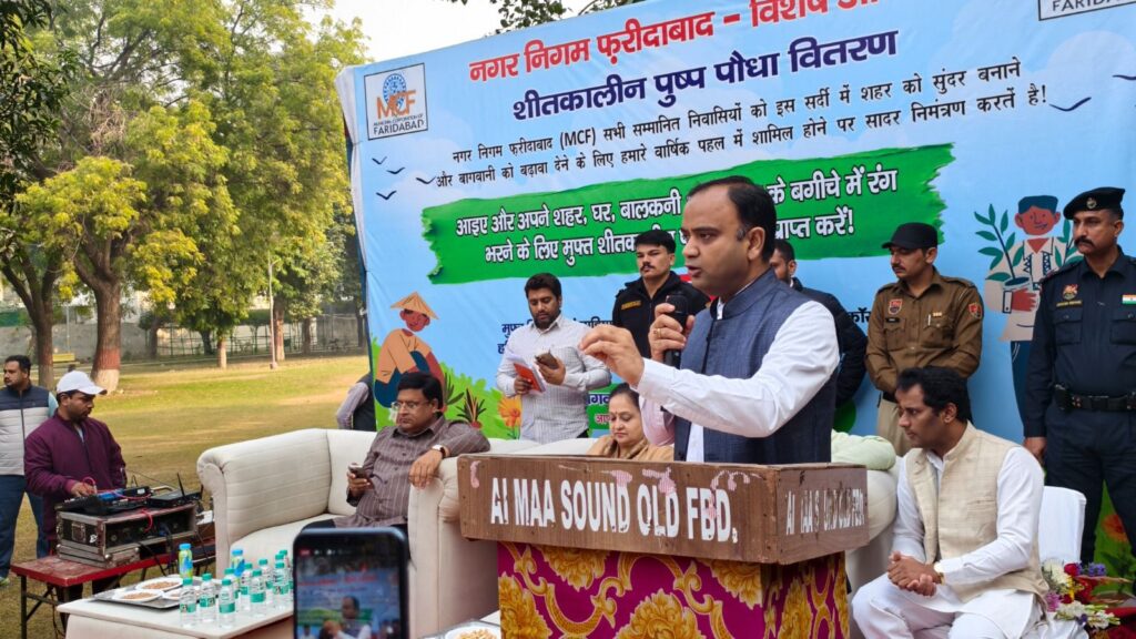 फरीदाबाद में हरियाली, सौंदर्यीकरण और नागरिक सहभागिता को बढ़ावा देने हेतु नगर निगम और स्थानीय जनप्रतिनिधियों द्वारा एक बड़े स्तर पर आज हरित अभियान की शुरुआत की गई है। यह जानकारी देते हुए कैबिनेट मंत्री विपुल गोयल ने सेंट्रल पार्क, आरडब्ल्यूए सेक्टर-14 में नगर निगम फरीदाबाद द्वारा आयोजित शीतकालीन फूल वितरण समारोह में बतौर मुख्यातिथि शिरकत की। उनके साथ नगर निगम कमिश्नर धीरेन्द्र खड़गटा और मेयर प्रवीण जोशी भी मौजूद रही।