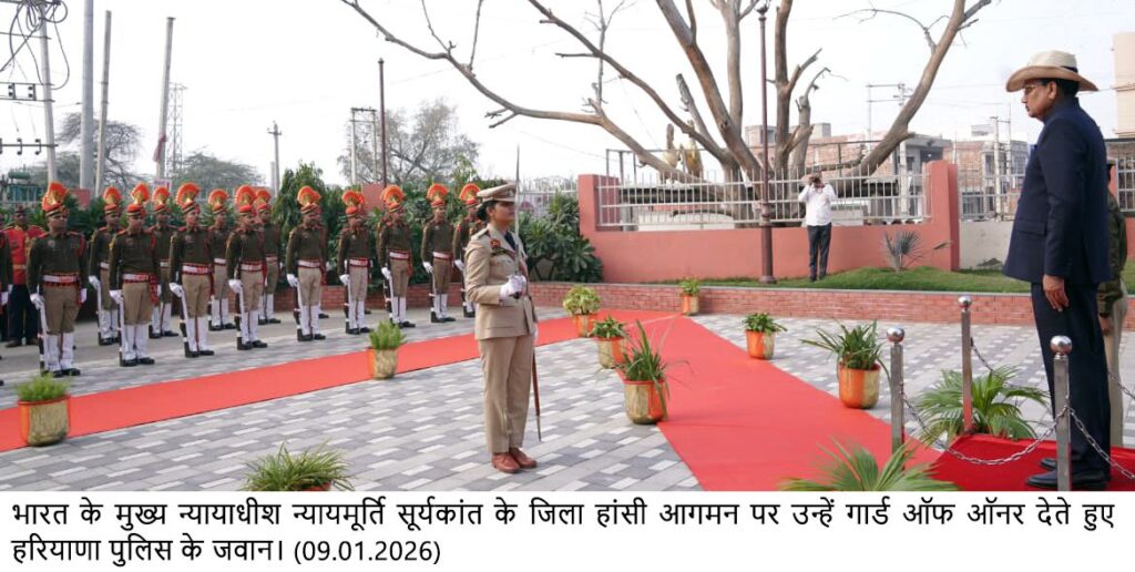इससे पूर्व स्थानीय लोक निर्माण विश्राम गृह में पहुंचने पर देश के मुख्य न्यायाधीश को गार्ड ऑफ ऑनर दिया गया। इस अवसर पर प्रदेश के लोक निर्माण मंत्री रणबीर गंगवा, विधायक विनोद भ्याणा ने मुख्य न्यायाधीश को पुष्पगुच्छ भेंट कर स्वागत किया।