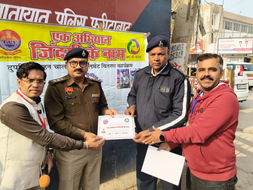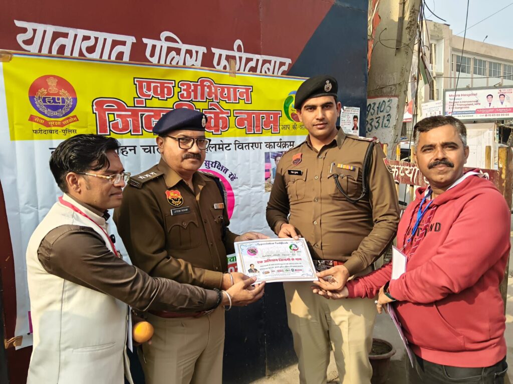इस अवसर पर यातायात पुलिस निरीक्षक अनुज कुमार व जेडओ 10 बल्लबगढ़ सहायक उप निरीक्षक कन्हैया लाल.एडिशनल एसएचओ उप निरीक्षक जगबीर. अग्रसेन चौकी इंचार्ज पीएसआई धर्मपाल. बस अड्डा पुलिस चौकी इंचार्ज उप निरीक्षक नरेश कुमार सहित अन्य पुलिस के जवान शामिल रहे। कार्यक्रम के दौरान मुख्य रूप से सुनील कुमार जांगड़ा, दिनेश भारद्वाज, हिमांशी, शमीम अहमद और नितिन बंसल पत्रकार बंधु सहित अन्य गणमान्य लोग भी उपस्थित रहे।