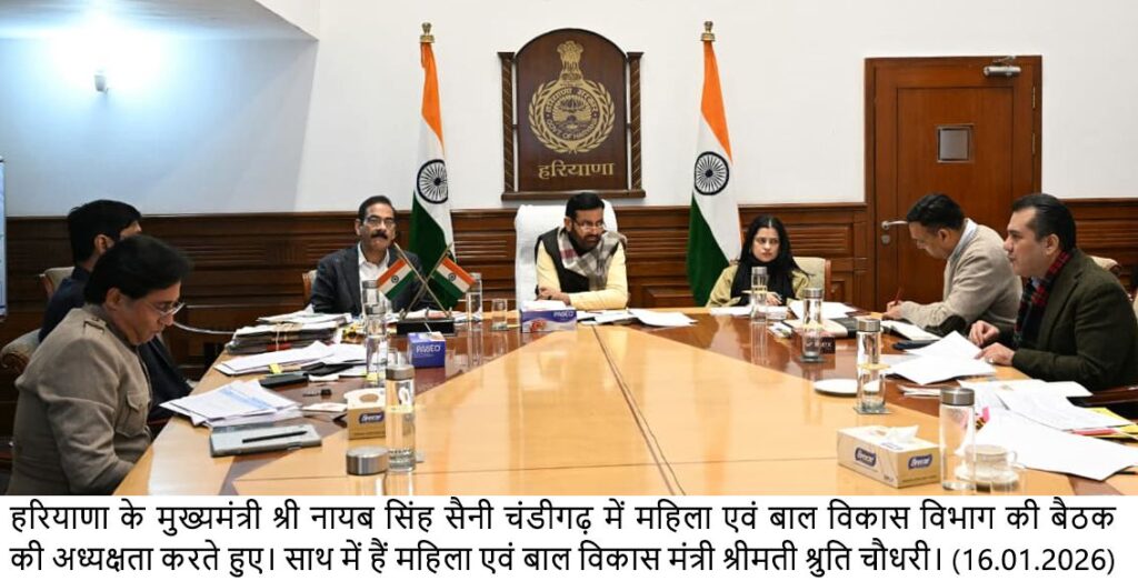 मुख्यमंत्री नायब सिंह सैनी महिला एवं बाल विकास की घोषणाओं को लेकर आयोजित बैठक की अध्यक्षता कर रहे थे। बैठक में महिला एवं बाल विकास मंत्री श्रीमती श्रुति चौधरी भी मौजूद रही।